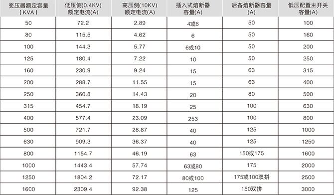 ◆美式箱變高壓保護(hù)用熔斷器配置情況一覽表(三相);